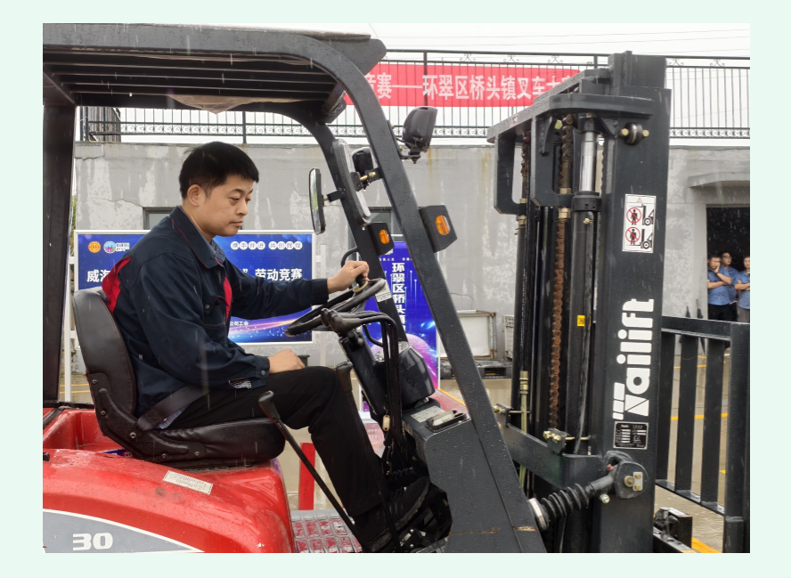 This competition brought together forklift experts from various enterprises in Qiaotou Town. The trade union staff conducted accurate refereeing, and all contestants showed no stage fright, presenting their best skills and truly achieving "each showing their special prowess". Raindrops soaked the competition venue, and the unusual weather increased the difficulty of the competition, but it did not dampen the contestants' enthusiasm at all. No one backed down due to the rainy day – operating the lever forward, every lifting, turning and aligning was as precise as ever.