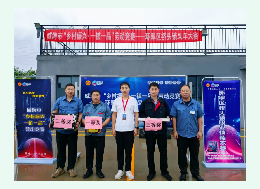 Rain mixed with sweat witnessed the love and persistence that transcended the weather. Everyone "performed beyond their usual level". In the Weihai "Rural Revitalization • One Town, One Product" Labor Competition – Qiaotou Town Forklift Competition of Huancui District, Wang Youquan from Bangde company won the first prize; Hou Litao and Xiao Han won the second prize; Sun Huming and Qiao Kaifang won the third prize.